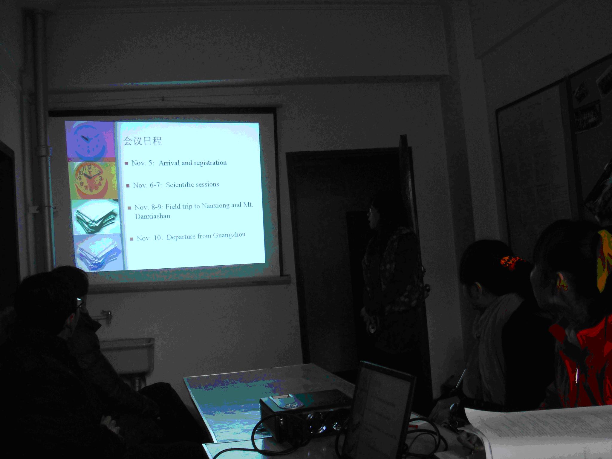 杜宝霞博士的报告题为“第2届中俄东亚植物群演化与发展学术研讨会”,她主要对2012年11月初在广州市中山大学举行的第二届中俄东亚植物群演化与发展学术研讨会的会议情况进行了介绍,并分享了一些自己参会的心得体会。在杜宝霞博士绘声绘色的报告中,我们了解了此次会议具体的学术研讨内容、参会人员、以及会后的野外考察情况,获取了国际上古植物学的研究热点以及研究进展等最新动态,激发了大家的研究热忱,扩宽了研究面。同时,杜宝霞博士还特意将会后在广东省南雄盆地考察其K/T界限以及广东省著名的丹霞山考察丹霞地貌的情况给大家做了汇报。杜宝霞博士的汇报引起了与会研究生的热烈讨论,美丽的野外地质美景引发了大家空前的专业自豪感,对地质学这一以野外工作为特色的学科产生了更加浓厚的兴趣,提高了对地质学研究的积极性。