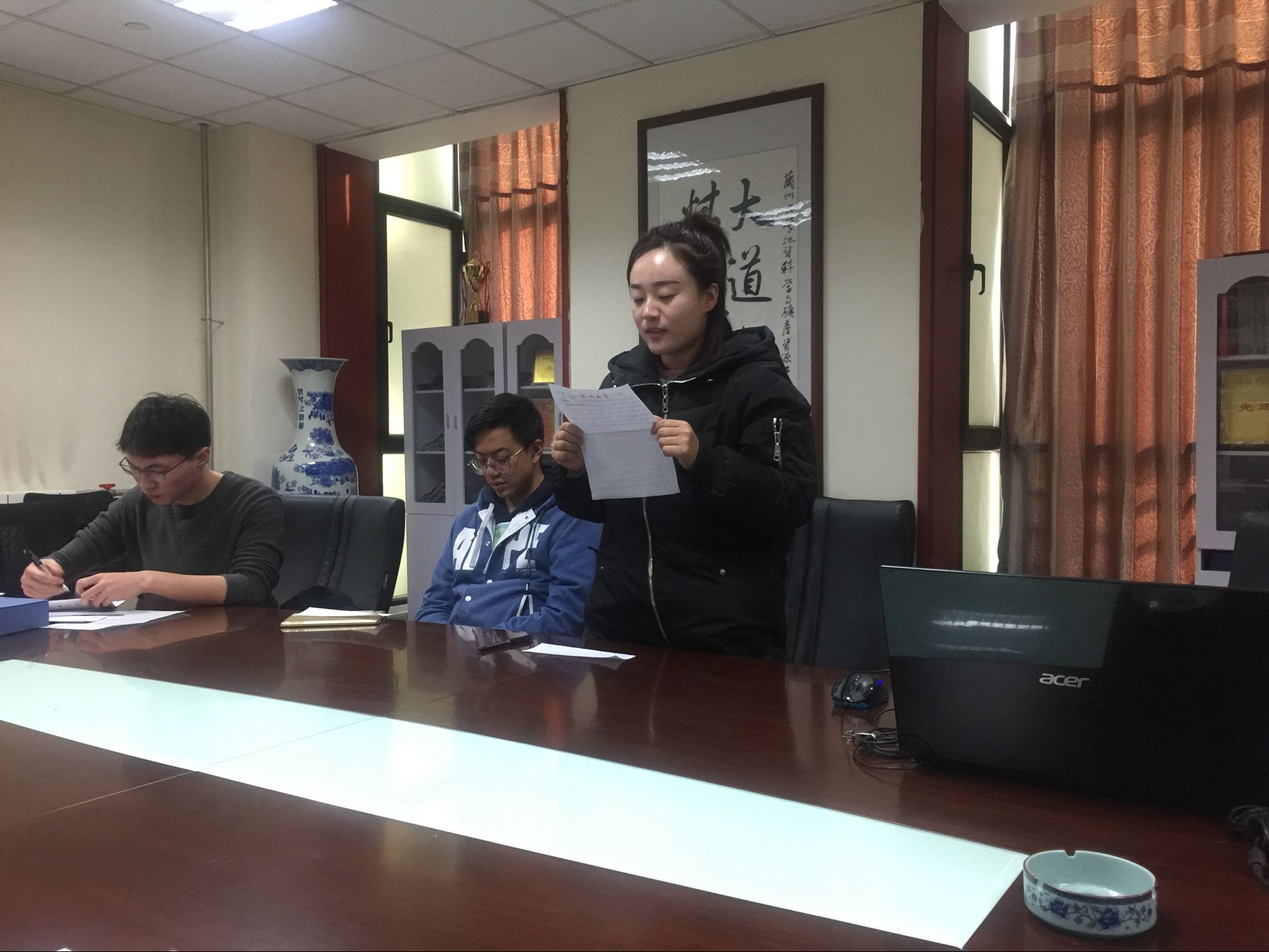 会议第一项,为进一步传达十九大精神,切实贯彻“三会一课”制度,支部书记解三平为支部全体党员上了一堂题为“十九大新党章修改要点”的党课,带领大家一起学习理论的变化、以及修改党章有哪的现实意义。他指出,党的十九大把习近平新时代中国特色社会主义思想确立为党的指导思想,顺应了时代发展,也是这次修改党章的最大亮点。这不仅有利于全党坚定信心,奋发有为,完成新时代赋予中国共产党的历史使命,有利于实现全国人民从站起、富起来到强起来的历史性跨越。更有利于增强党内政治生活的政治性、时代性、原则性、战斗性,永葆党的生机和活力。他强调,十九大精神不是一节党课就能学完的,作为青年学生党员的我们应该时刻保持学习态度,积极领会十九大修改的新党章的精神,用新的标准不断严格要求自己,不断砥砺前行,开拓进取。