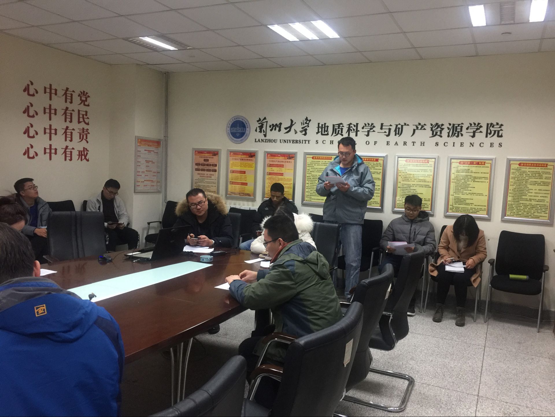 2017年12月12日下午,古生物研究所党支部于观云楼1305会议室召开民主评议大会以及专题组织生活会,支部内党员全员参加,会议由支部书记解三平教授主持。